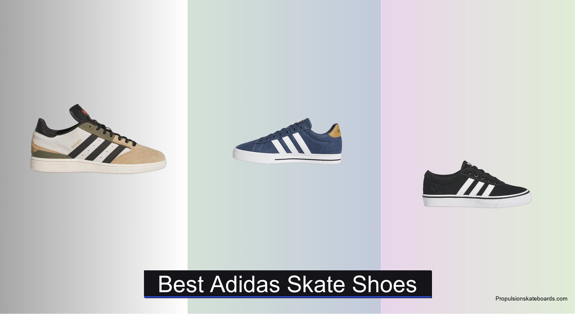 5 Best Adidas Skate Shoes of 2026 Skate26, April 6, 2026 Skateboarding demands footwear that can withstand constant impact, abrasion, and grip stress, yet many riders struggle to find Adidas skate shoes that balance durability, board feel, and comfort. Low-quality materials lead to blowouts, poor sole construction reduces control, and improper fit causes discomfort during long sessions. The best Adidas skate shoes solve these issues with durable suede uppers, responsive vulcanized soles, and supportive fits designed for high-impact performance. Features like reinforced toes, OrthoLite sockliners, and Geofit collars enhance longevity and comfort where it matters most. We analyzed over 20 Adidas skate shoe models, evaluating user reviews, material quality, sole type, and pro skater endorsements to identify the top performers. Our picks prioritize durability, board feel, cushioning, and value, backed by real-world feedback from skaters and expert publications. Each recommended shoe excels in its category, whether you’re looking for premium performance, budget-friendly reliability, or street-ready style. Read on to find the best Adidas skate shoes for your needs. Top Adidas Skate Shoes on the Market adidas Men’s Busenitz Skate Shoes Best Overall Durable suede/syntheticCustomizableGeofitRecessedTextile See on Amazon adidas Men’s Daily 3.0 Skate Shoe Best for Durable Canvas Snug fitWashed canvasLace closureOrthoLiteVulcanized rubber See on Amazon adidas Mens Adiease Skate Sneakers Best Budget Friendly RegularLaceSuedeTextileRubber See on Amazon Adidas Men’s Daily 4.0 Sneakers Best Mid Range Soft textileReinforced toeTextileRubberSkate-inspired See on Amazon Adidas Men’s Streetalk Platform Shoes Best for Style Synthetic LeatherLacePlatformRubber CupsoleBlack/White/Matte Gold See on Amazon ‹‹— —›› Best Adidas Skate Shoes Review Best Overall adidas Men’s Busenitz Skate Shoes Upper Material Durable suede/synthetic Tongue Customizable Collar Geofit Eyelets Recessed Lining Textile Latest Price → ADVANTAGES ✓ Durable upper ✓ Geofit collar ✓ Recessed eyelets LIMITATIONS × Minimal cushioning × Heavy for walking Built like a tank and designed for precision, the adidas Busenitz delivers a razor-sharp flick feel that serious skaters crave. Its durable suede and synthetic upper laughs off abrasion, resisting blowouts even after relentless ledge grinds and slab sessions. The Geofit collar molds to your ankle like a second skin, offering laser-tight support without sacrificing mobility—perfect for technical street lines where control is king. If you’re tired of shoes falling apart after two weeks of hard use, this one’s engineered to survive the abuse. Out on the pavement, the Busenitz shines in high-impact scenarios. The recessed eyelets are a game-changer, preventing lace shred during flip tricks—no more mid-session lace failures. At 13.8 oz (size 10.5), it’s not the lightest, but the trade-off is unmatched durability and board feel. The vulcanized construction and thin rubber outsole offer exceptional board control, though grip on wet concrete can be slightly slippery. It’s less ideal for long-distance walking, as cushioning is minimal—this is a no-nonsense performance skate shoe, not a lifestyle sneaker. Compared to the softer Daily 4.0, the Busenitz is the serious skater’s weapon, trading plush comfort for precision and longevity. While the Adiease is a solid entry-level choice, the Busenitz is built for those who demand pro-level durability and flick accuracy. It’s the top pick for street skaters who prioritize board control and build quality over all else. For the same rugged intent, it outperforms the Daily series in technical settings, even if it costs a bit more. ❮ ❯ Check Latest Price on Amazon → Best for Durable Canvas adidas Men’s Daily 3.0 Skate Shoe Fit Type Snug fit Upper Material Washed canvas Closure Lace closure Sockliner OrthoLite Outsole Vulcanized rubber Latest Price → ADVANTAGES ✓ Breathable canvas ✓ OrthoLite comfort ✓ Lightweight design LIMITATIONS × Less abrasion-resistant × Minimal ankle support The adidas Daily 3.0 is a breath of fresh air for skaters who want a light, broken-in feel from day one—thanks to its washed canvas upper that’s soft, flexible, and ready to shred. Unlike stiffer suede models, this one gives you instant comfort and a low-profile silhouette that oozes classic skate charm. The OrthoLite sockliner adds a surprising punch of underfoot cushioning, making it a top contender for all-day wear, whether you’re skating rails or just cruising campus. If your priority is a durable yet breathable canvas shoe that won’t stiffen up after one session, this is your match. In real-world use, the Daily 3.0 handles street skating with ease, though it’s not built for heavy-duty grinds. The vulcanized rubber outsole offers decent board feel and grip, but the canvas can wear through faster on high-impact zones like the ollie area. Weighing in at just 12.3 oz (size 10.5), it’s one of the lightest in the lineup, perfect for flip-heavy skaters. However, it lacks the ankle support of a Geofit collar, so big drops or technical transitions feel less secure. It’s best suited for mellow street skating and daily wear, not competition-level tricks. When stacked against the Busenitz, the Daily 3.0 trades durability for comfort and breathability. It’s closer in spirit to the Adiease but with better cushioning and a more premium textile feel. For skaters who want a reliable, breathable canvas shoe that won’t break the bank, it’s a standout. It delivers more comfort than the Adiease and more breathability than the Daily 4.0, making it the best canvas-focused option in the adidas skate lineup. ❮ ❯ Check Latest Price on Amazon → Best Budget Friendly adidas Mens Adiease Skate Sneakers Fit Regular Closure Lace Upper Suede Lining Textile Outsole Rubber Latest Price → ADVANTAGES ✓ Affordable build ✓ 