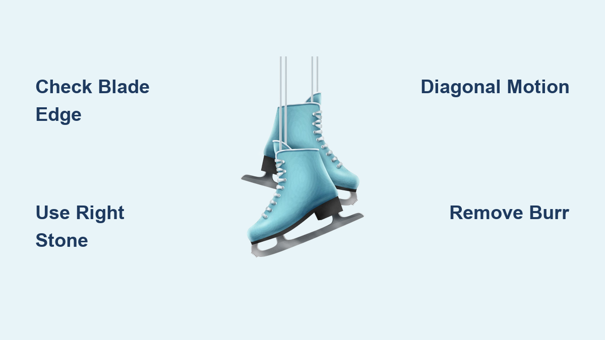 How to Sharpen Skates: Quick Steps Skate26, February 22, 2026 That crisp bite into the ice you felt during your first skating lesson gradually disappears with every session until you’re fighting for traction during maneuvers that once felt effortless. Dull blades transform confident stops into frustrating slides and graceful turns into unstable wobbles. Learning the best way to sharpen skates puts you in control of your equipment’s performance and saves you countless trips to the pro shop. Whether you’re a weekend recreational skater or training for competition, mastering this essential skill ensures your blades deliver optimal grip whenever you step on the ice. Most skaters wait too long before sharpening or make critical mistakes that damage their blades during the process. The truth is, sharpening your own skates isn’t about brute force—it’s a precise technique that requires understanding your blade’s steel composition, using the right tools, and applying consistent pressure. This guide reveals the professional approach to sharpening that serious skaters use to maintain razor-sharp edges season after season. You’ll learn how to identify when sharpening is needed, select appropriate stones for your blade type, execute flawless sharpening technique, and extend time between sharpening sessions. Recognize When Your Blades Need Attention Your skates silently tell you when they need sharpening through subtle performance changes that become impossible to ignore if you know what to watch for. The most obvious sign appears during stops—you’ll notice sliding farther than usual as your edges lose their ability to bite into the ice surface. Turning becomes less responsive, with edges either slipping unexpectedly or catching too abruptly during maneuvers that once felt smooth. These inconsistencies aren’t just frustrating; they increase your risk of falls and injuries as you compensate for unpredictable blade behavior. Visual inspection provides concrete evidence beyond just performance feel. Run your fingernail gently along the blade edge at a shallow angle—sharp blades create a distinct, continuous line you can feel, while dull blades feel rounded or uneven with possible nicks interrupting the edge profile. The “thumbnail test” offers another reliable indicator: press your thumbnail lightly against the blade edge. A sharp blade leaves a clean mark or slight indentation, while a truly dull blade offers no resistance. Most recreational skaters need sharpening every 10-15 hours of ice time, but this varies significantly based on blade steel type and ice conditions—harder ice preserves edges longer than soft, slushy surfaces. Match Sharpening Stones to Your Blade Steel Type Using the wrong sharpening stone for your blade’s steel composition wastes time, damages your equipment, and delivers poor results. The critical factor is matching stone hardness to your blade’s Rockwell Hardness (HRC) rating—too soft a stone won’t effectively sharpen hard steel, while too hard a stone damages softer steel through excessive material removal or micro-fractures. Stainless steel blades (57 HRC)—the most common for recreational skaters—respond well to aluminum oxide stones for regular maintenance and carbide stones for aggressive material removal when neglected. Carbon steel blades (60 HRC) require diamond-coated or ceramic stones to effectively sharpen their harder composition while resisting rust between sessions. High Speed Steel (62 HRC) and powder metallurgic steel (66 HRC) absolutely demand diamond-coated stones—the extreme hardness of these premium blades quickly wears down ceramic alternatives. Always start with coarser grits (100-400) for badly dulled blades, then progress through medium (600-1000) and fine (1500-2000) stones for optimal edge refinement. Secure Skates Properly on Your Sharpening Table Attempting to sharpen skates in a standard vice or improvised clamp guarantees inconsistent results and risks blade damage. A dedicated sharpening table positions both skates upside down with blades pointing upward at identical heights—this parallel alignment ensures uniform sharpening across both blades while accommodating the bulk of the skate boot. Begin by adjusting the table’s mounting plates to match your skate size, ensuring they contact the entire blade base evenly without crushing the metal. Position your skates with blades hanging freely and secure them firmly against the reference surfaces. Critical check: both blades must sit perfectly parallel to the table surface and at identical heights—any discrepancy creates performance imbalances that translate to dangerous handling on the ice. Proper setup takes just two minutes but prevents hours of frustration from uneven sharpening results. Diagnose Common Mounting Mistakes Blade wobble during sharpening: Indicates insufficient tightening—recheck all adjustment mechanisms Uneven sharpening across blade width: Skates mounted at different heights—reposition both simultaneously Inconsistent edge feel from heel to toe: Blade not resting evenly along its entire length—adjust plate positioning Apply Correct Sharpening Motion and Pressure The diagonal sharpening technique separates professional results from amateur attempts. Instead of straight back-and-forth strokes, move your stone diagonally across the blade from heel to toe in smooth, continuous motions. This approach distributes wear evenly across the stone’s surface while creating consistent blade geometry. Follow this precise sequence: 1. Position yourself comfortably facing the sharpening table 2. Apply moderate, consistent pressure—enough to feel material removal but not enough to hear grinding 3. Move the stone diagonally across the blade in one fluid motion from heel to toe 4. Lift the stone completely off the blade during return strokes 5. Repeat 15-20 times until a burr forms along the entire edge Warning: Excessive pressure removes too much