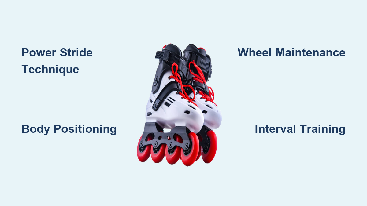 How to Skate Faster on Rollerblades: Quick Tips Skate26, April 4, 2026 There’s nothing quite like the rush of gliding smoothly on rollerblades, feeling the wind against your face as you pick up speed. Yet many recreational skaters hit a frustrating plateau where no matter how hard they push, their velocity doesn’t increase. This common challenge stems from improper technique rather than lack of effort—most skaters unknowingly waste energy through inefficient movements that limit their potential speed. Understanding how to skate faster on rollerblades requires mastering specific biomechanics that convert your physical effort into forward momentum rather than sideways sprawl or wasted vertical motion. The difference between casual and speed-focused rollerblading comes down to precision in movement patterns. Elite rollerbladers achieve impressive velocities not through brute strength but through optimized technique that maximizes power transfer with minimal resistance. When you learn how to skate faster on rollerblades properly, you’ll discover that speed becomes less exhausting and more sustainable, transforming your experience from a tiring workout to an exhilarating flow state. This guide breaks down the exact elements that contribute to accelerated rollerblading performance, focusing on actionable adjustments you can implement immediately regardless of your current skill level. Mastering the Power Stride Technique The foundation of speed skating lies in perfecting your power stride, which differs significantly from casual recreational strides. Professional speed skaters generate forward momentum through a precise sequence that engages multiple muscle groups in perfect coordination, creating a powerful “V” shape with each stride rather than the inefficient side-to-side motion many beginners use. How to Execute the Perfect Power Stroke Your power stroke begins with your weight fully transferred to your pushing leg, which should be positioned at approximately 45 degrees to your direction of travel. Rather than pushing directly sideways, focus on driving your leg backward and slightly outward in a powerful arc that ends with your toe pointed in the direction of travel. This backward driving motion—often described as “sweeping the floor with your foot”—creates true forward propulsion instead of wasteful lateral movement. Complete the stroke by fully extending your leg behind you before lifting your foot to return to the starting position. Common power stroke mistakes to avoid: – Pushing directly sideways instead of backward – Incomplete leg extension during the stroke – Leaning too far forward or backward – Keeping your knees locked rather than flexed – Rushing the recovery phase between strokes Finding Your Optimal Stride Cadence Speed isn’t just about powerful strokes—it’s about finding the perfect balance between stride length and frequency. Many skaters mistakenly believe longer strides automatically mean more speed, but overstriding actually creates braking forces that slow you down. Your ideal cadence depends on your fitness level and skating goals, but most speed skaters maintain between 80-100 strokes per minute when accelerating. Pro tip: Use a metronome app to develop consistent rhythm. Start at 70 beats per minute and gradually increase as your technique improves. Focus on completing each full power stroke within one beat cycle—push on the first beat, recover on the second. Perfecting Your Body Position for Maximum Efficiency Your upper body positioning dramatically affects your speed potential, yet many skaters focus exclusively on leg movements while neglecting this critical element. The optimal racing position minimizes wind resistance while maintaining stability and power transfer—a delicate balance that requires specific alignment from head to toe. Achieving the Aerodynamic Tuck For maximum speed, lower your torso until it’s nearly parallel with the ground while keeping your head up to maintain visibility. Your arms should be bent at 90 degrees with hands positioned near your hips, not extended forward. This position reduces your frontal surface area by up to 30% compared to an upright stance, significantly decreasing wind resistance at higher speeds. Key alignment points: – Knees bent at 90-110 degrees – Weight centered over the balls of your feet – Back straight, not rounded – Head up, looking 10-15 meters ahead – Shoulders relaxed and square to direction of travel Why Core Strength Matters More Than Leg Power Contrary to popular belief, your core muscles play a more significant role in speed skating than your leg muscles. A strong core stabilizes your upper body during powerful strokes, preventing energy-wasting wobble and maintaining proper alignment. Skaters with weak cores often experience “speed wobble”—a dangerous oscillation that forces them to slow down. Quick core conditioning routine for skaters: 1. Plank variations (front and side) – 3 sets of 45 seconds 2. Russian twists with light weight – 3 sets of 20 3. Bird-dog exercise – 3 sets of 12 per side 4. Dead bugs – 3 sets of 15 per side Optimizing Your Equipment for Speed Performance Your rollerblades themselves can either enhance or severely limit your speed potential. While technique matters most, having properly configured equipment removes unnecessary resistance that could be slowing you down without you even realizing it. Wheel Selection and Maintenance Strategies Larger wheels (80-100mm) generally provide better speed maintenance once you’re rolling, though they require more initial effort to accelerate. For most recreational skaters focusing on speed, 84mm wheels offer the best balance of acceleration and top-end speed. More importantly, ensure your wheels are properly aligned and regularly rotated to prevent uneven wear that creates drag. Wheel maintenance checklist: – Check for flat spots weekly (spin each wheel to detect wobble) – Rot
